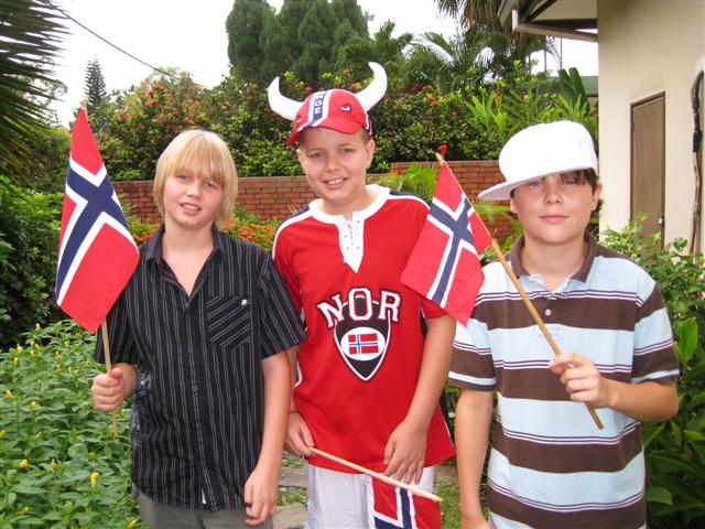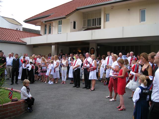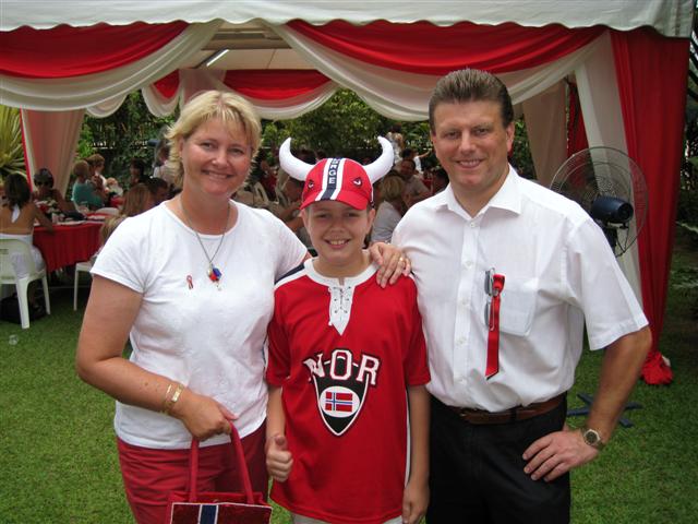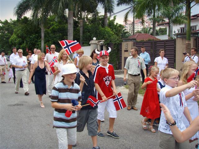 Norges grunnlovs- og nasjonaldag, populært bare kalt 17. mai, ble feiret i den Norske Ambassadørens hjem i Kuala Lumpur. Det var en varm og klam dag og de fleste var svette og utkjørte etter 17. mai toget i gatene under stekende solskinn. Men det var nok øl til alle. Etterpå møttes noen av oss til en lite "etterpåfest" som holdt på til langt utpå kvelden.